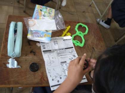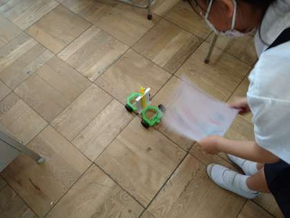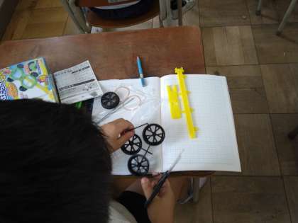 実験で使う車の組み立てをして、実際に車を走らせました。
