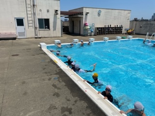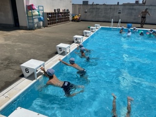 こちらは壁を使ってかえるあしの練習をしています。うまく足の裏で水を押しています。