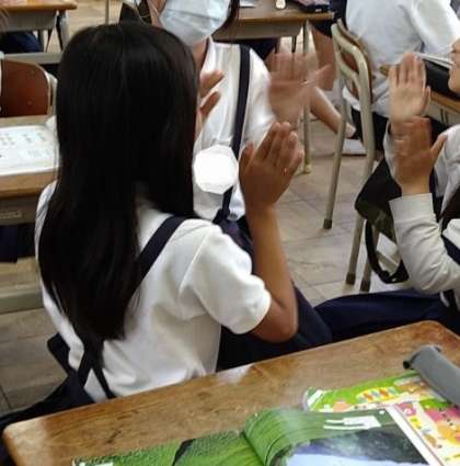 音楽「茶つみ」を手あそびを入れて楽しく歌いました。