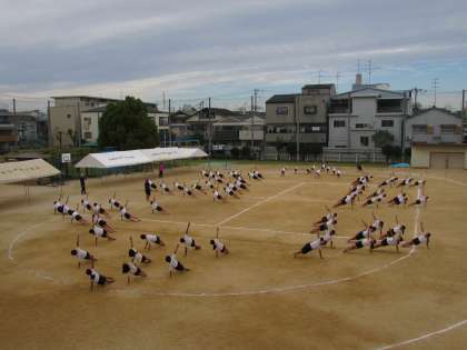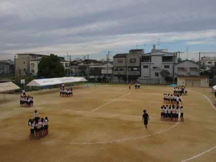 6年生の練習の様子です。6年生が組み立て体操の練習に取り組んでいます。明日、明後日と雨が降るかも知れず、今日が最後の運動場での練習のつもりで頑張りました。