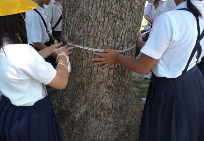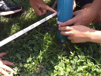 まきじゃくを使って、まるいもののまわりの長さをはかりました。