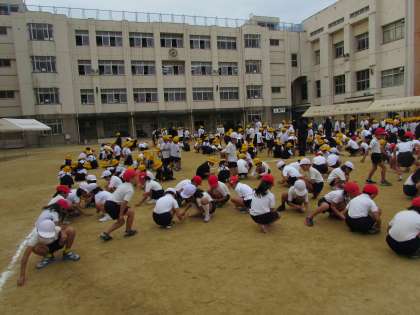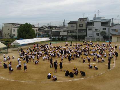 木曜日の朝、児童集会の様子をご紹介します。本日の児童集会では、全校で石拾いを行いました。予定していた日に雨が降り、今日まで延ばしてきていましたが、今日は雨が降る前に皆で石を拾うことができました。約5分間、集中して石を拾うことができました。