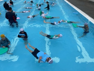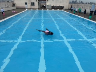 次は背浮きです。補助具をうまく使って浮いています。