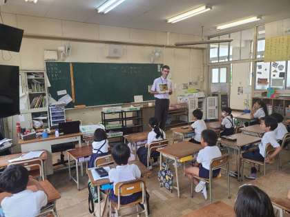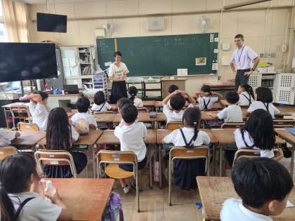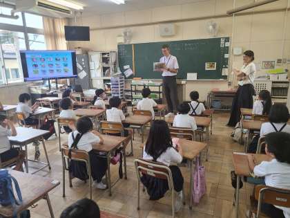 外国語活動でネイティブの先生と動物の鳴き声を真似して言ってみたり、歌ってみたりする活動をしました。楽しみながら学習をしていました。