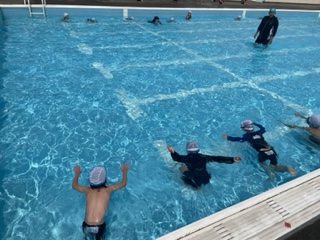 水遁の術で忍者に変身しています。見つからないように上手に潜ることができるようになりました。