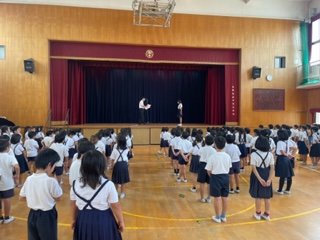 7月19日(水)に1学期の終業式を実施しました。全校児童が講堂に集まって、1学期の成果や課題を振り返りました。表彰状を受け取る児童がおり、成果がたくさん感じられる式となりました。