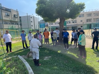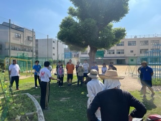 7月27日(木)は芝生の管理作業の日でした。地域の皆様と教職員で取り組みました。