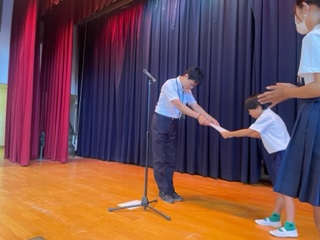 始業式の中で、表彰状を受け取る児童もいました。2学期の生活についてがんばること等を考えられる時間となりました。