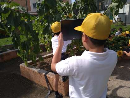 ヒマワリ、マリーゴールド、ホウセンカが実をつけはじめました。