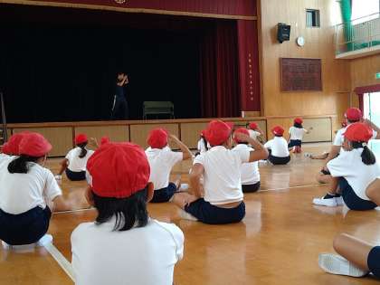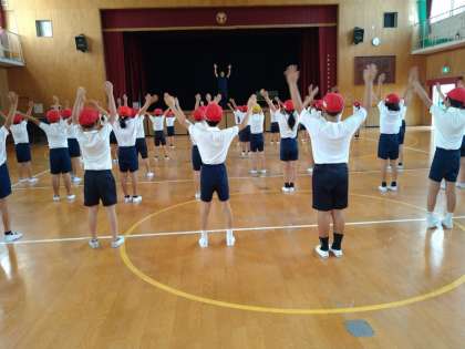 今日は講堂でダンスの練習をしました。