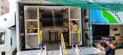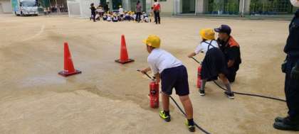 2年生は講堂で学習後、地震の揺れ体験、火事の煙体験、水消火器の体験をしました。子どもたちは真剣に取り組んでいました。