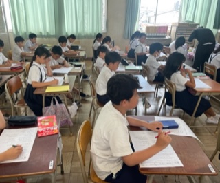 昼休み後の学びタイムでは、国語の学習に取り組みます。音や様子を表す言葉を考えています。答え合わせでは自信たっぷり発表することができました。