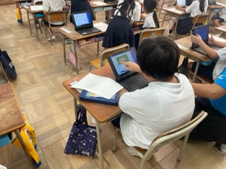 1年生がパソコンの使い方を学習しています。まずは心の天気を入力しました。その後はデジタルドリルを進めました。もう少し慣れれば、家庭へ持ち帰っての使用にも取り組みます。