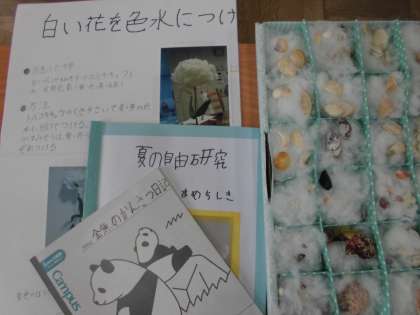 花の色の変化、金魚、貝殻、赤ちゃんの観察と不思議に思うことを研究してくれました。疑問に思うことを観察したり、調べたりすることはとても大切です。