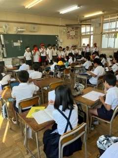 朝の時間に応援団が応援合戦を教えに来てくれました。 朝からたくさん声を出しました。