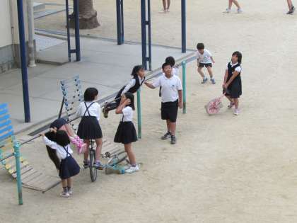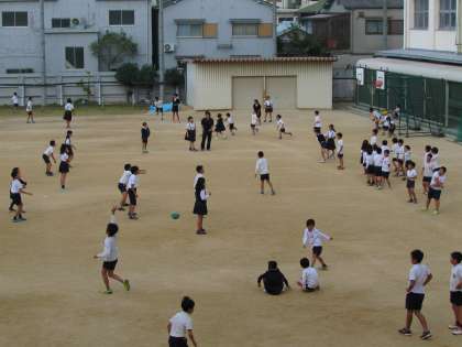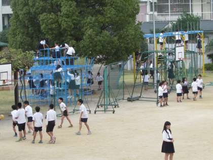今日のお昼休みの、運動場の様子です。気候も良く、子どもたちが元気に遊んでいます。