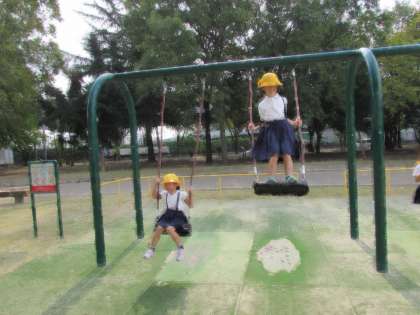 本日、2年生は秋の遠足で、久宝寺緑地に行ってきました。公園では、たくさんある遊具でたっぷり遊び、どんぐり拾いでは用意した袋にいっぱい拾うことができました。
