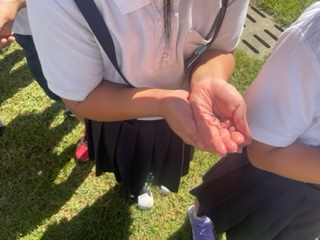 天王寺蕪の種をもらいました。小さくて落としてしまいそうです。この後、植え方を教わり、学習円に植えてみます。