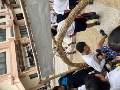 地域学習として7月には夏祭りが行われている生根神社に見学に行きました。宮司さん,権禰宜さんから神社の歴史、だいがく祭りなどのお話を聞かせていただき、地域愛が深まる学習になりました。