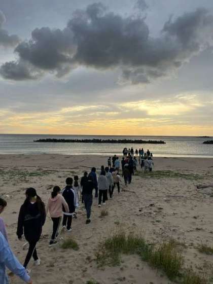 朝のつどいのあとは朝食です。昨日は疲れてよく眠れた児童が多かったようです。