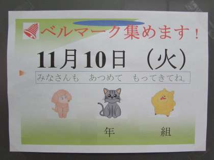 次回のベルマーク回収は、11月10日です。ご協力お願いいたします。