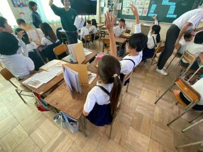 友だちのできることやできないことを英語で伝えあって誰のことか考えるクイズをしました。