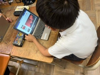 社会の学習では大阪のお祭り「天神祭り」について調べ学習をしています。