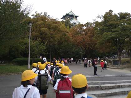 ロードトレインを降りてから、歩いて大阪城へ行きました。