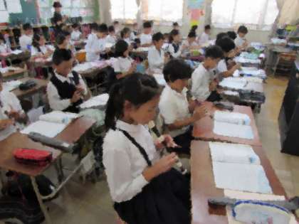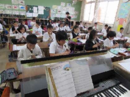 4年生の音楽の学習の様子です。皆で、リコーダーの合奏をしています。曲は、「オーラリー」です。