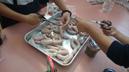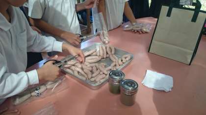 苦労して作ったウィンナー、おいしそうに出来上がりました。冷蔵で学校に発送し、明日、お土産として家に持って帰ります。