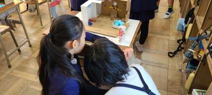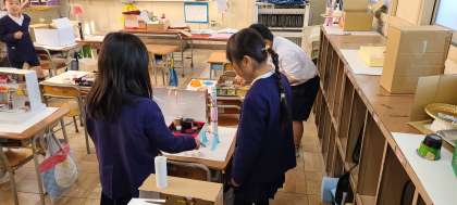 今日は学年で作品の途中経過の見合いっこをしてから、作品づくりに取り掛かりました。友だちの作品に刺激を受けたようです。もうすぐ完成です。ご期待ください。