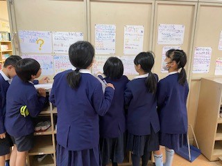 読書週間にちなみ、11月13日〜22日まで図書室では図書委員会によるクイズイベントをしています。千本小学校のみんながいろんな本に親しむきっかけになってほしいという思いで取り組みました。たくさんの児童が、図書室にやってきて参加してくれています。