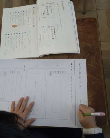 はがきやふうとうのあて名の書きかたについて学習しました。