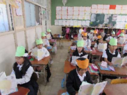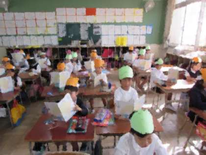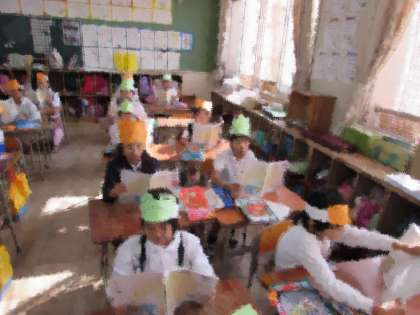 今日は、かえるくん、がまくんのお面をつけ、それぞれの役になりきって、音読をしました。