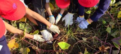 芋の大きさ、蔓の長さ、芋の形にびっくりしていました。