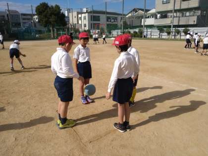 おにごっこやプレルボールの練習をしました。
