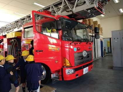 はしご車のはしごは40mものびるということを教えてもらいました。