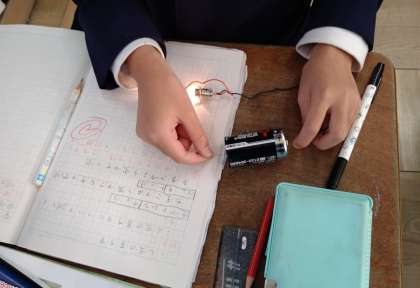 3年 理科 公開日 2023/12/06 更新日 2023/12/06 3年生 理科「電気で明かりをつけよう」 乾電池と豆電球をつけた導線をどのようにつなぐと電気がつくのかを実験で確かめました。 いいね(0)