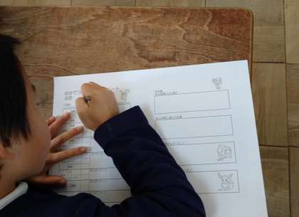 2学期をふりかえって、自分ががんばったことをプリントにまとめました。