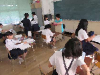 5年生の学習の様子をご紹介します。2クラスを3つに分割し、算数の学習を行っています。本日の学習は、分数の学習に取り組んでいます。