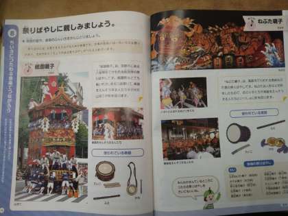 祇園囃子(京都府)、ねぶた囃子(青森県)、神田囃子(東京都)について学習しました。リズムに特徴がある祭りばやしで、使われている楽器も違うことに気がつきました。