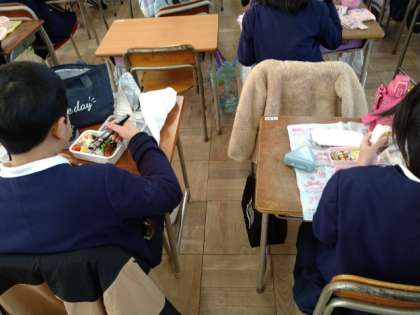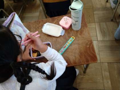 学校に帰ってきて、お弁当を食べました。
