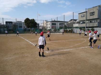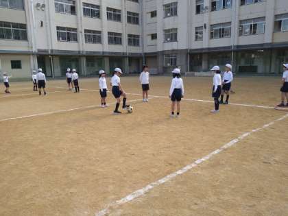 グループでボールを蹴る練習をしたり、コロコロキャッチのゲームをしました。