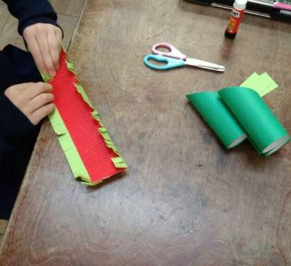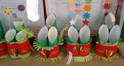 トイレットペーパーの芯を使って、門松を作りました。