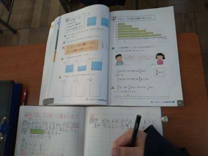 1めもりの大きさを考えてから、全体の水の量を考えました。