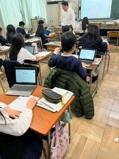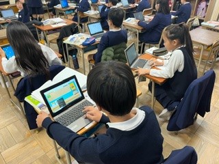本当は運動場に冬の生き物を観察しに行く予定が、あいにくの雨なので、急遽タブレットを使って学習しました。