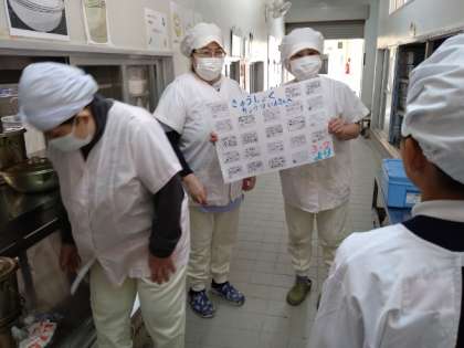 給食をつくってくださっている調理員さんにメッセージを書きプレゼントしました。