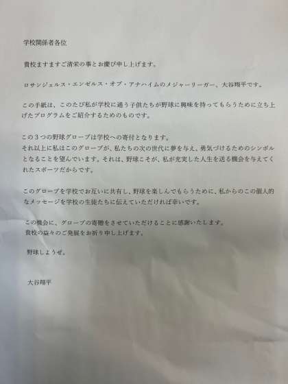 1月24日(水)ついにメジャーリーガー大谷翔平選手からのグローブが届きました。近いうちに子どもたちへ紹介します。