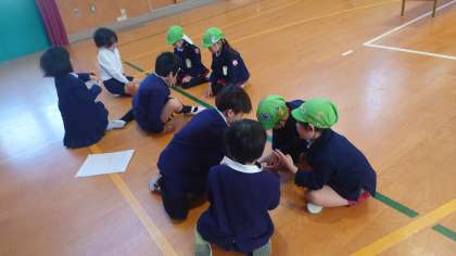 いろいろな昔遊びを岸里幼稚園の子どもたちに教えてあげました。
