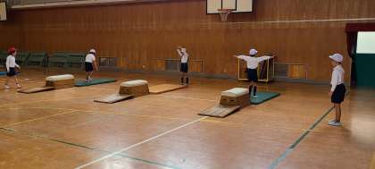 とび箱遊びをしました。ふみこしとびやまたぎのりなどを中心に行いました。